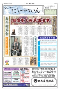 有限会社 花 新 〒600-8449 京都市下京区新町松原下ル 富永町107番地 電話(075)351-8144 12 13 18 16 15 20 12 23 12 13 16 12月12日 後藤 諒司さん 早川 実希さん ご門徒の皆さんからいた だく様々な質問「仏法は何 の役に立つの?」、「法事を 勤める意味は何か?」など、 それらの問いを通して仏様 のお心を味わっていきます。 「如来」とは、分け隔て の無い一如を知らせんと来 られた方です。 自他を分けずにはおれな い私だからこそ、仏様のお 話を聴聞いたしましょう。 問いから仏様のお心を味わう 4月5日(日)・6日(月) つねにわが身をてらすなり 4月15日(水)・16日(木) 48 滋賀県 東近江市 教勝寺 59 滋賀県 高島市 浄願寺 一人一人の苦悩に寄り添 い、必ず救うと誓われた如 来の本願のはたらきである 大悲のお心(お慈悲のぬく もり)を学ばせていただき ましょう。 如来の大悲をいただく 3月15日(日)・16日(月) 75 滋賀県 守山市 慶先寺 西別院では、毎月5・6日と15・16日に常例布教を開催している。全日程とも午前10時と午後1 恒例法要に引き続き開催している。 当コーナーでは、常例布教講師からのコメントを紹介。全国各地の布教使にお越しいただくので さい。 ※1月5・6日、2月15・16日、8月15・16日は休止します。 私のため 3月5 「南 れは他 ために ありま を共に います 富 魚 法 本願寺名古屋別院(西別院)https://www.tokai-hon 13 16 80 ⑸ 2026(令和8)年2月5日 名 古 屋 西 別 院 (第192号) 西別院では、別院本堂を く だは さ、ていおい。で気まの軽はす仏にじ。前おめ式結問、を婚いホお式合テ考もわルえ執せやのり料方行亭 っな ど 月日〜日に、真宗大 報 恩谷講派が名営古ま屋れ別、院 ( 東 別 院 ) で 日の逮夜 拝 焼法香要に 出は仕、し佐た藤。浩 紹 輪 番 が 参 法要には多くの門信徒が参 拝し、堂内が厳かな雰囲気に 西別 院で は、 3月 日 要 」に を併祖営せ親む(て鸞。日「聖)全人午戦御後没命1者日時総逮か追夜ら悼法営法要む 」「 宗 名古屋市は昭和 (194 空 襲5に)よ年っ3て月市と街5地月がに被大害規を模 な 今年も年末恒例の「お煤払 い」 (大掃除)が 月日、西 別院門信徒と 職員で行なわ に 汗各 を部れ流屋、しな境、ど内半のや年清納間掃骨に、ら溜仏いま具はっ磨い き所 ・ 西別院子ども会は 月日 を開に催「し大、掃除・焼きいも大会」 人が参加した。 参加者は別院境内と本堂の 見 てな 興い清味本掃を堂に 内取 陣り の組 荘み 厳、 を普 間段 近は で入 れ 持った様子 だっ た。 清掃後、参加者は境内清掃 げ たで焼集きめ芋たを落味ちわ葉っなたど。で 焼 き 上 藤ふ じ 田た 朋と も 之ゆ き さ ん() 釋し ゃ 迦か 浩こ う 爾じ さ ん() 御み厨く り 得と く 雄ゆ う さ ん() ご縁 を結 ぶ 常 例 布教 たほこりを取り除いた。 また、午後からは東海教区 な し布会教(団青に年よ布る教「大仏会さ ま の お は )」が 開催され、 参加者は聴 聞し た。 ご結婚おめでとう 子ども会報告 焼きいも 徳を包しまのれんる中、親鸞聖人のご遺 でお勤めが され た。 なお、2月 日〜日に西 拝 さ講 れ法別る要院。にで は営 、ま 東れ 別る 院親 輪鸞 番聖 が人 参報 恩 外 の受建け物、が西焼別失院しもた鐘。楼 と 南 門 以 本法要では、戦後 年が経 めて過過し去たの現経代において、あらた 験について学 を 願く いこび、と、戦を戦争大争に切のよに記っし憶てなを失がつわらなれ平い 和で い 全 戦没 者 総 追悼 法 要 う 決を 意繰たをり方確返が認したすてをるは追。な悼 らし な、 い再 とび い戦 争 お煤 払 い す す は ら 報恩東講西に別参院拝輪焼番香が