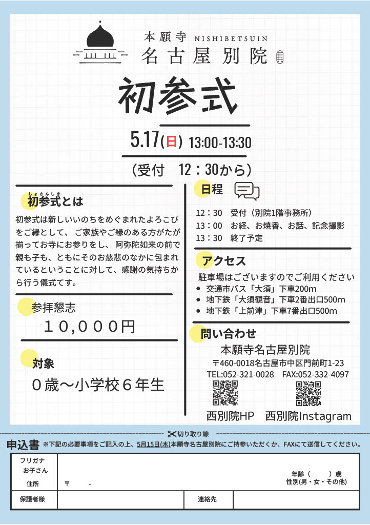 併せて初参式の参加も受け付けています。お気軽にご相談ください。