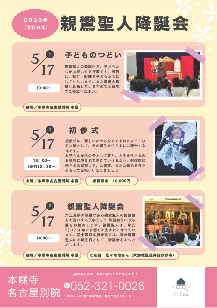 今年も本願寺名古屋別院では、5月17日(日)に「宗祖降誕会」を修行いたします。